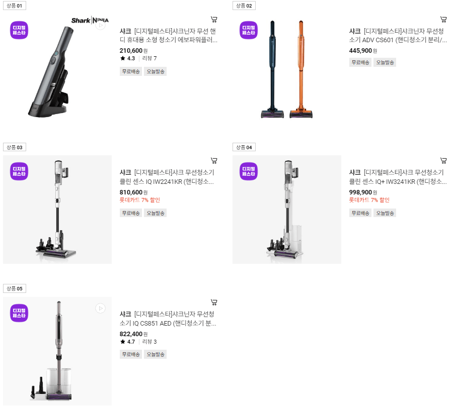 샤크닌자 청소기 보러 가기