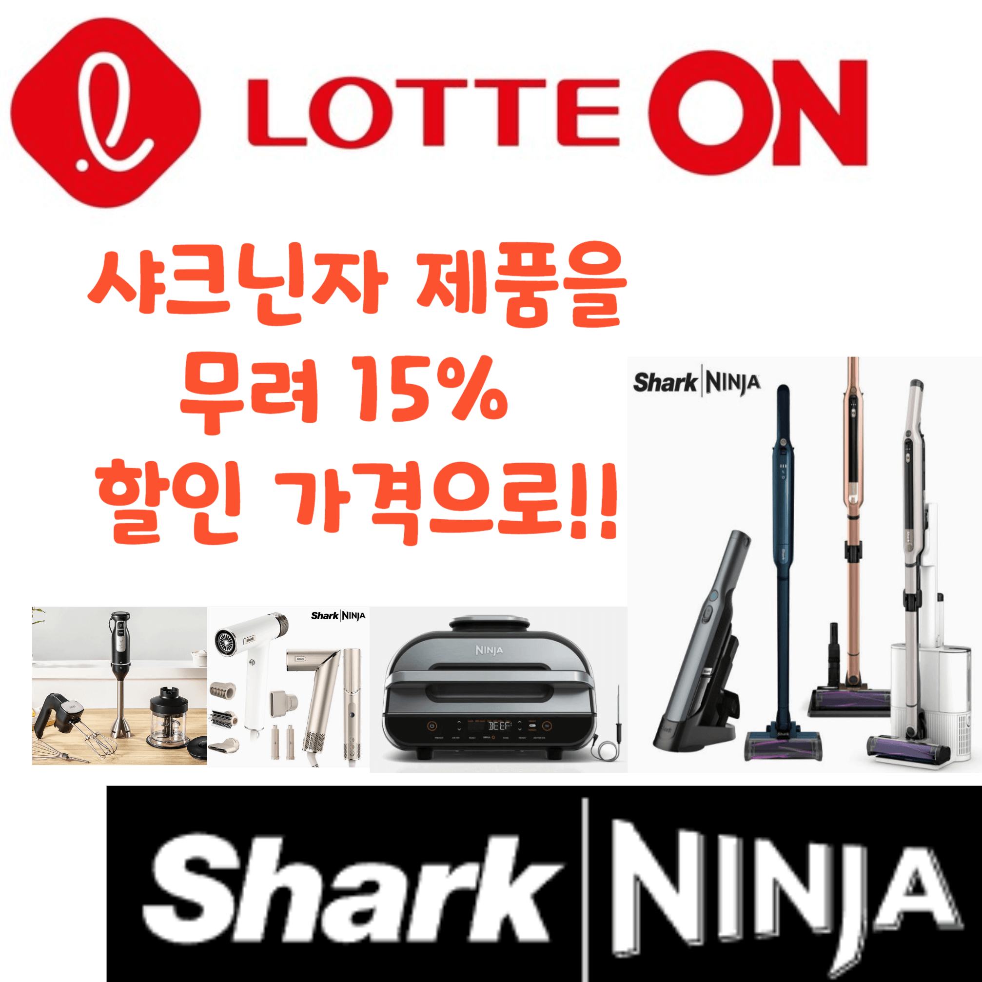 최근 국내에서 점점 인기를 끌고 있는 브랜드죠. 전 세계적으로 2,000여 개의 특허를 보유한 미국의 가전 브랜드 샤크닌자(Shark-Ninja)가 대한민국의 대표 쇼핑몰인 롯데온의 브랜드 쇼핑 대축제 "롯데온세상"에 참여한다는 따끈따끈한 소식입니다.