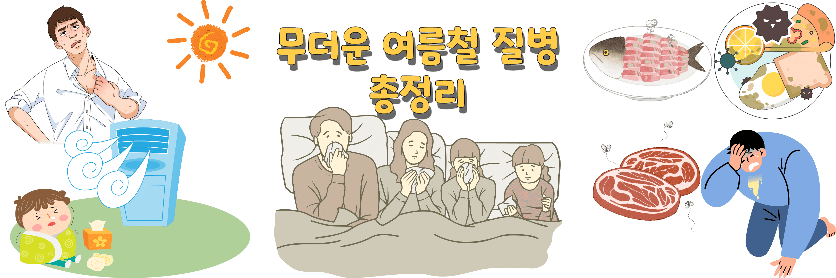 올해는 슈퍼 엘니뇨로 역대급 무더위가 기승한다고 합니다. 무더운 여름 걸리기 쉬운 질병과 그 증상을 잘 알아두고, 모두 건강하게 여름을 나시길 바랍니다.